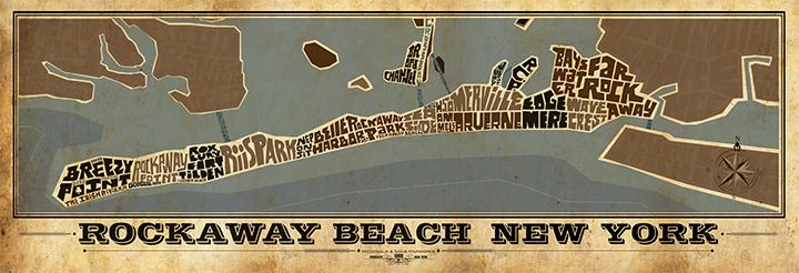 Rockaway Queens Typography Map โ LOST DOG Art & Frame